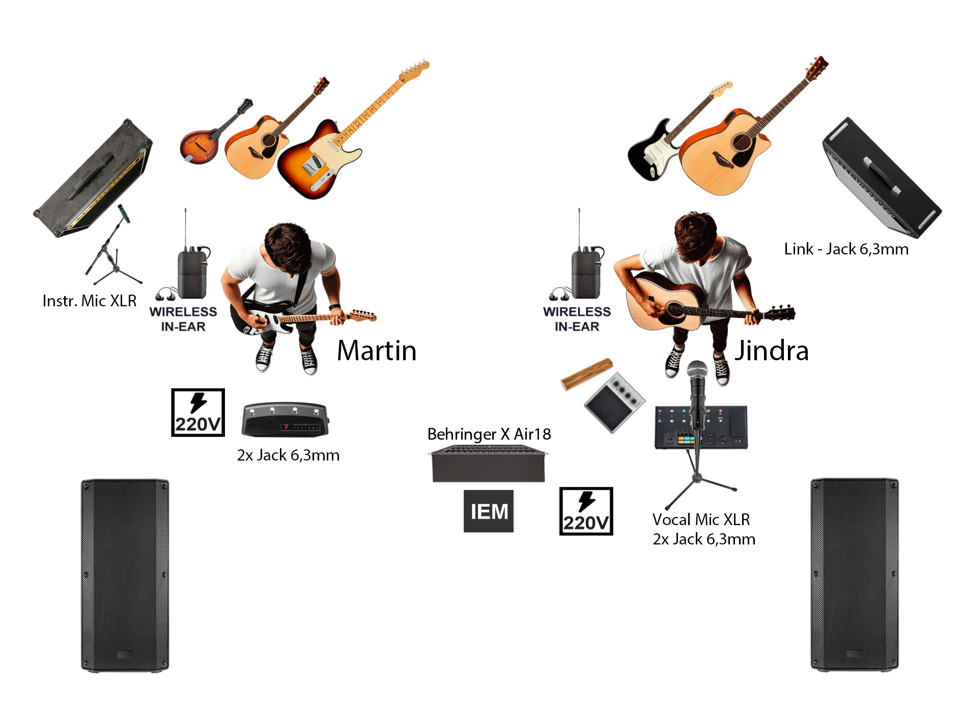 • Zpěv doprovázený dvěmi akustickými kytarami a živě tvořenými samply na looperu